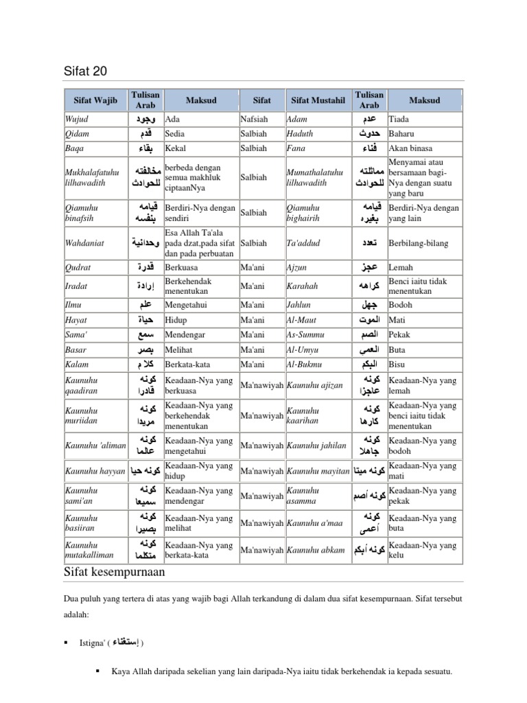 Sifat 20 Allah Dan Maksudnya Dalam Jawi